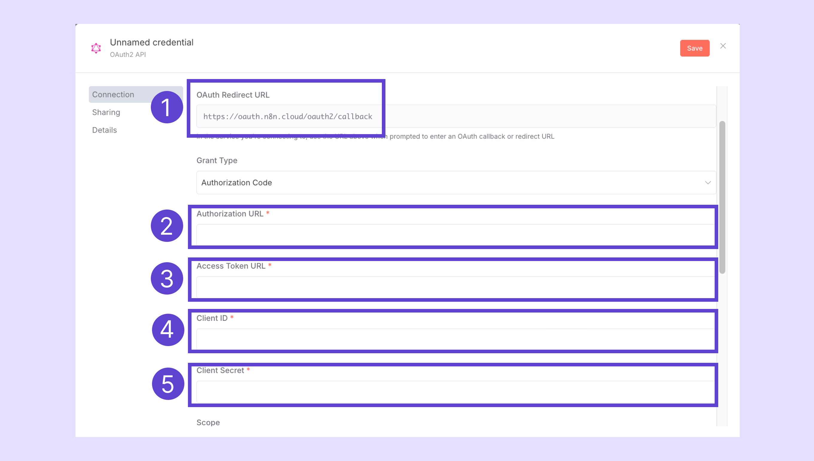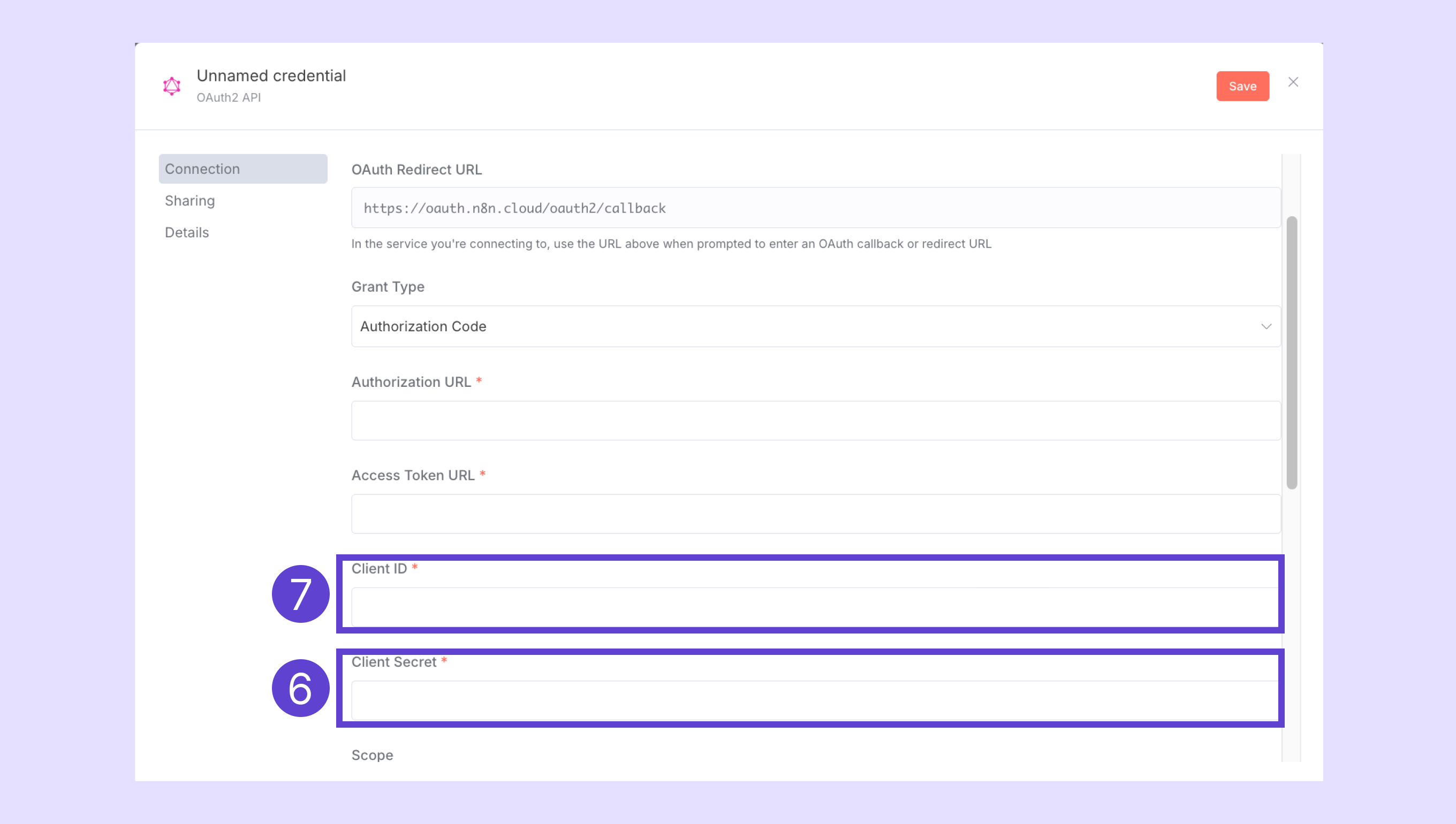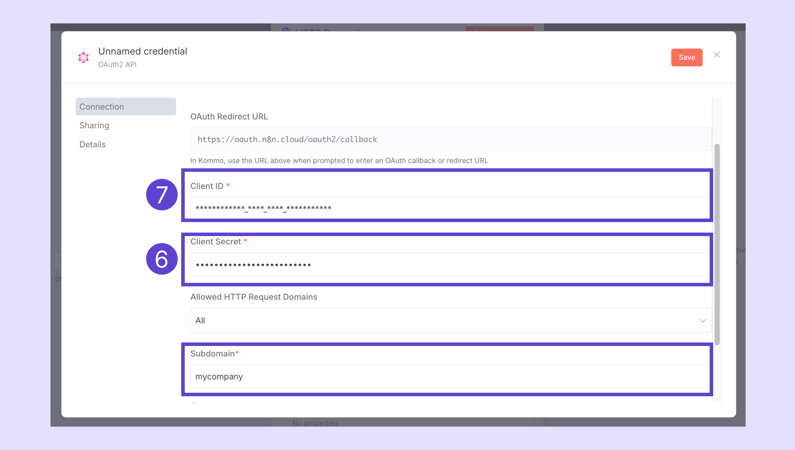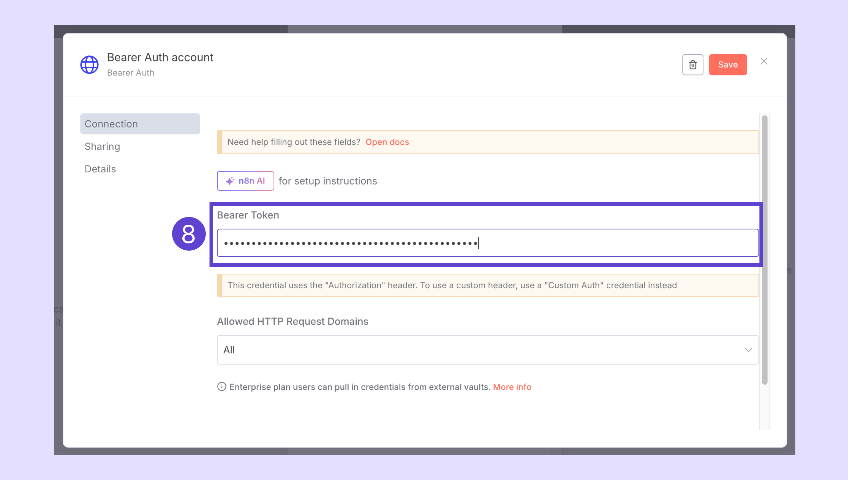 - n8n'deki kimlik bilgisi penceresine geri dönün.