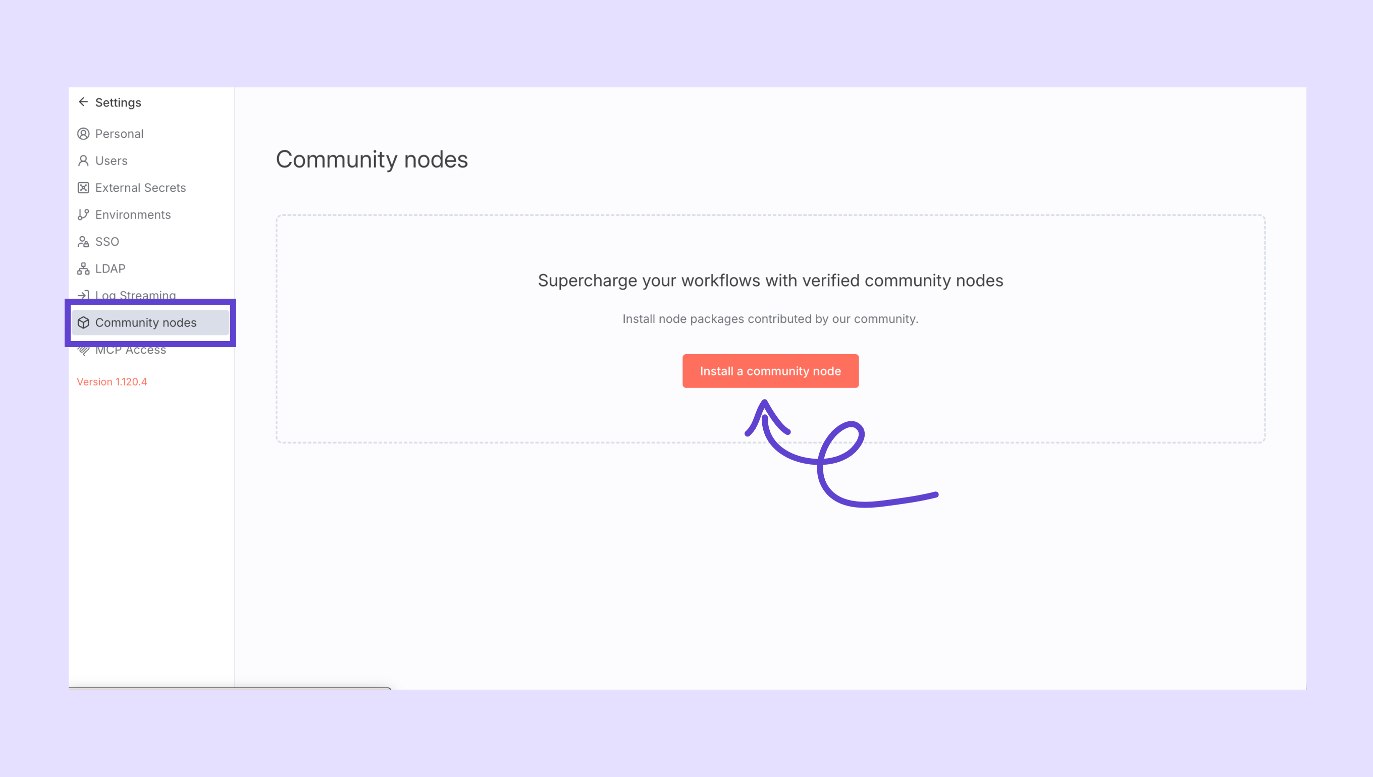 Community nodes’a gidin ve tıklayın: Install a community node.