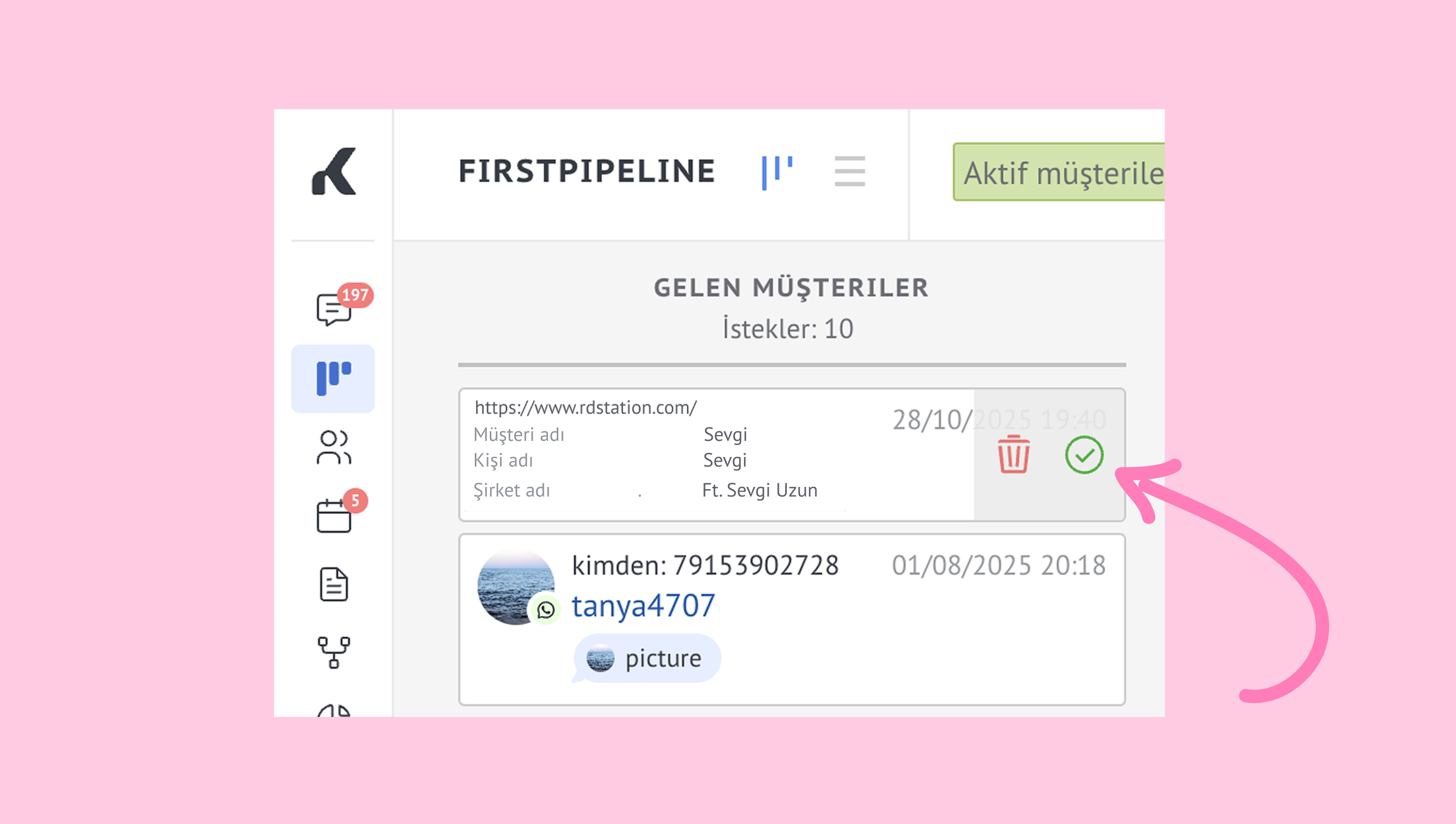 - Müşteriyi başka bir aşamaya taşıyabilir veya uygun değilse silebilirsiniz.