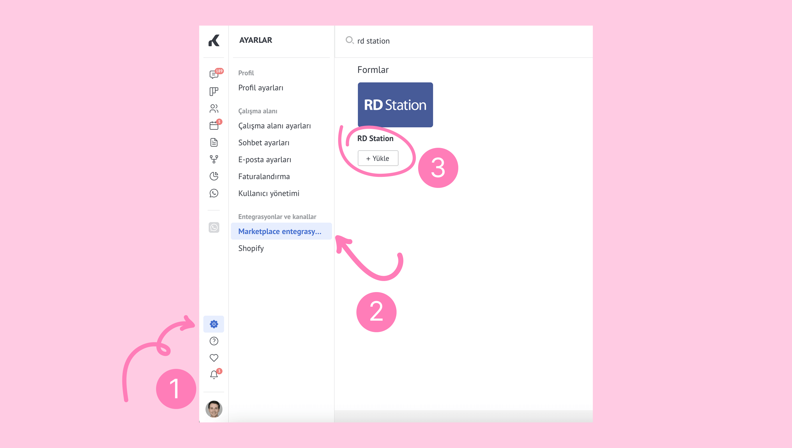 Kommo'da Ayarlar → Entegrasyonlar → RD Station'ı arayın.