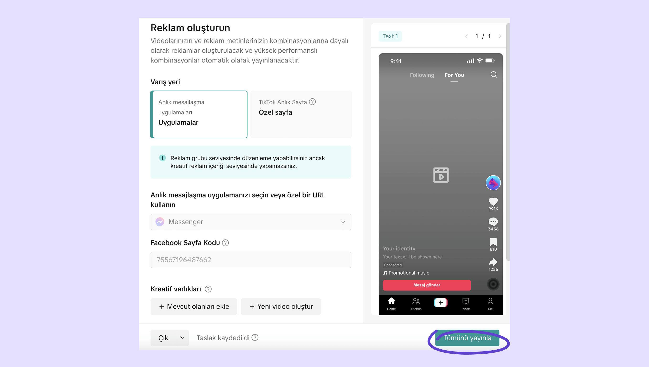 Bunu yaptıktan sonra, TikTok'ta ilk Anlık Mesajlaşma reklamınızı oluşturmak için şu adımları izleyin: