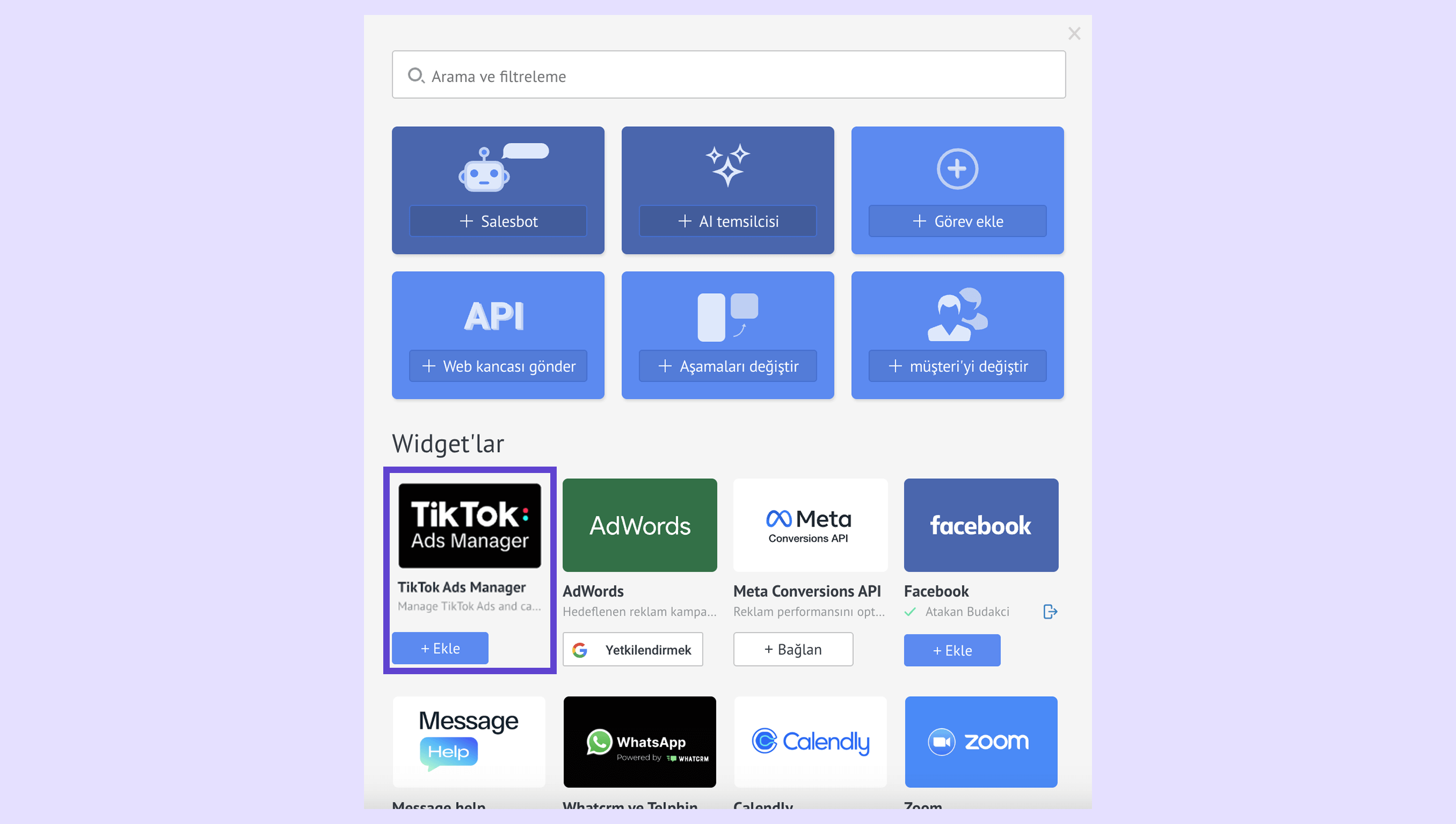 Kommo'da TikTok Ads Manager entegrasyonunu kurup bağladınız.