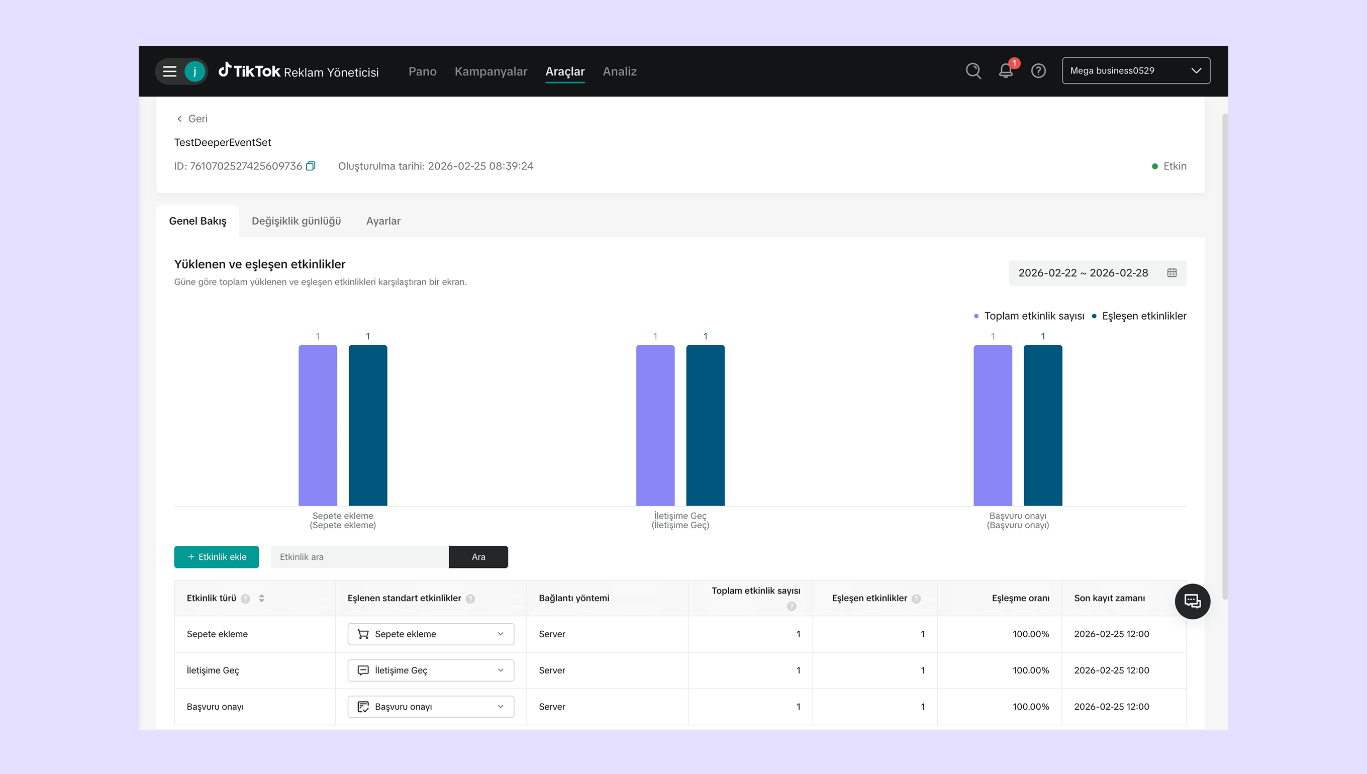 TikTok Ads hesabınızda daha önce oluşturduğunuz Etkinlik Setini seçin.