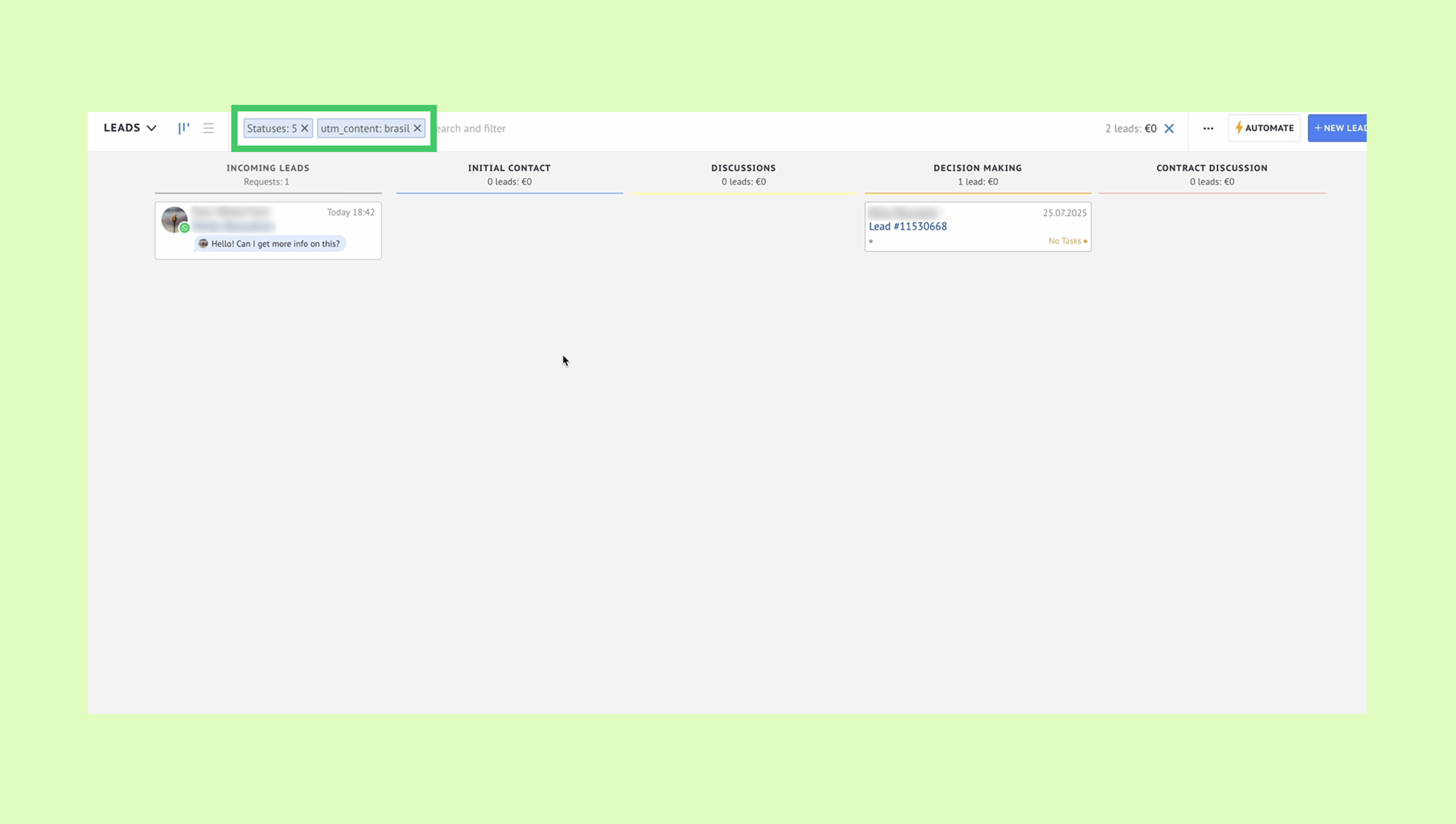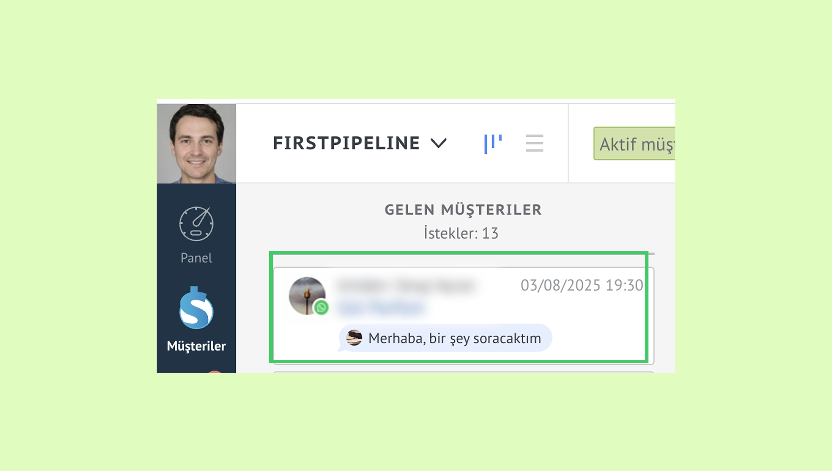 Kommo, Gelen müşteriler aşamasında bir müşteri oluşturur.