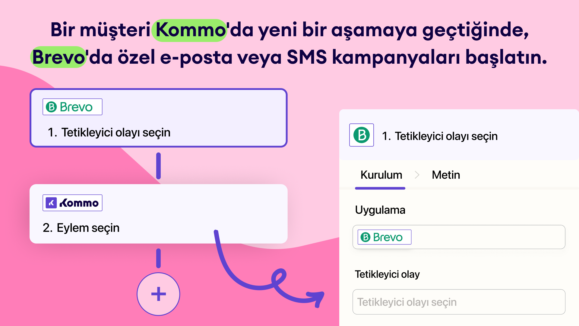 Zapier aracılığıyla Brevo entegrasyonu, Kommo kullanıcılarına takip ve pazarlama iletişimlerini otomatikleştirmek için güçlü bir yol sunar. İster yeni bir müşteri, ister bir müşteri aşama güncellemesi veya form gönderimi olsun, Brevo anında kişiselleştirilmiş kampanyalar başlatarak etkileşimi artırır ve sonuçları iyileştirir.