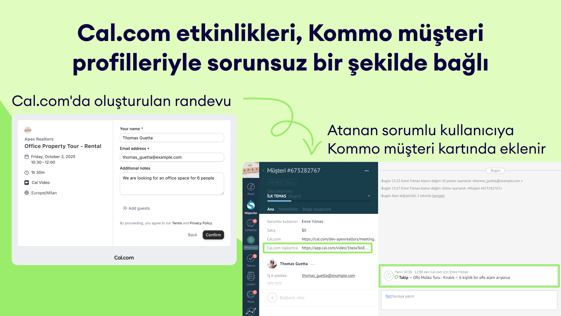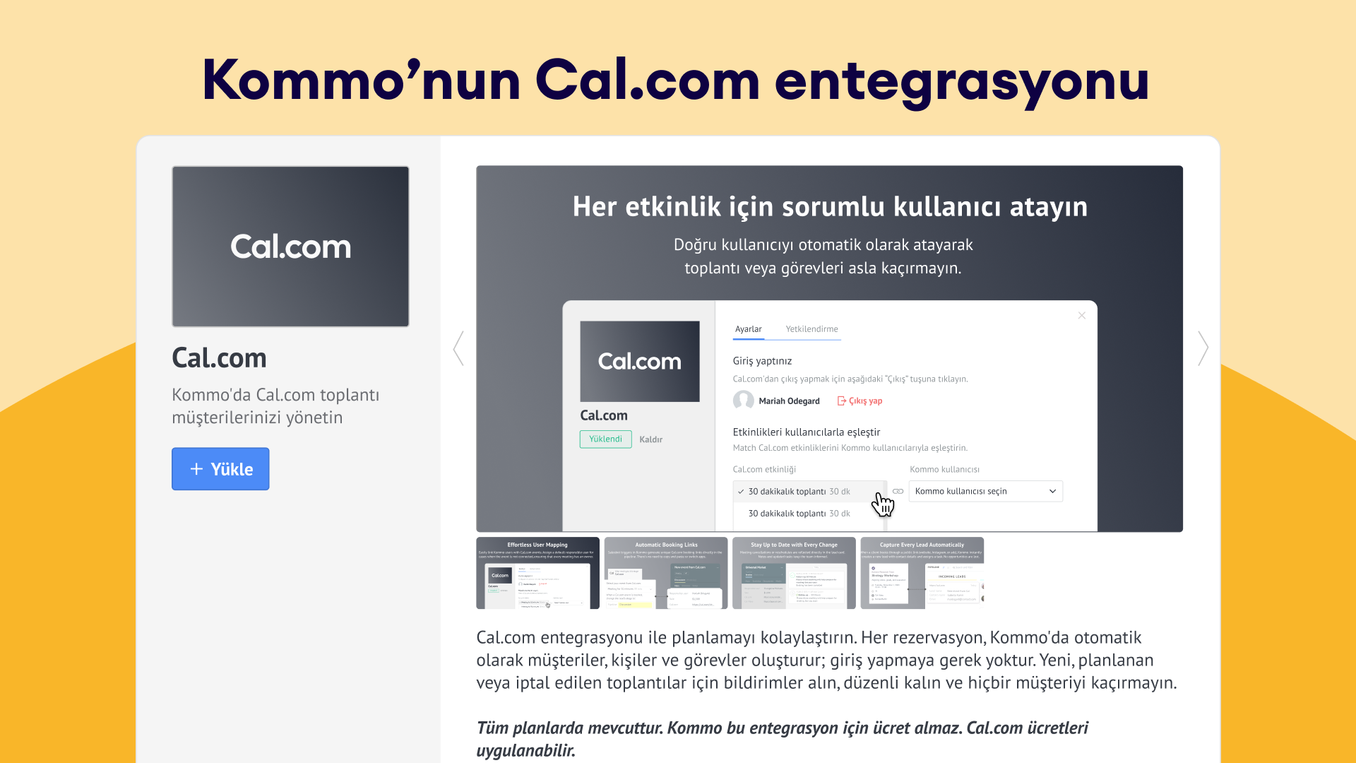 Cal.com, Kommo'ya bağlandığında planlama kolaylaşır ve tamamen entegre olur. Bu entegrasyonu en iyi şekilde kullanmanın bazı yolları şunlardır: