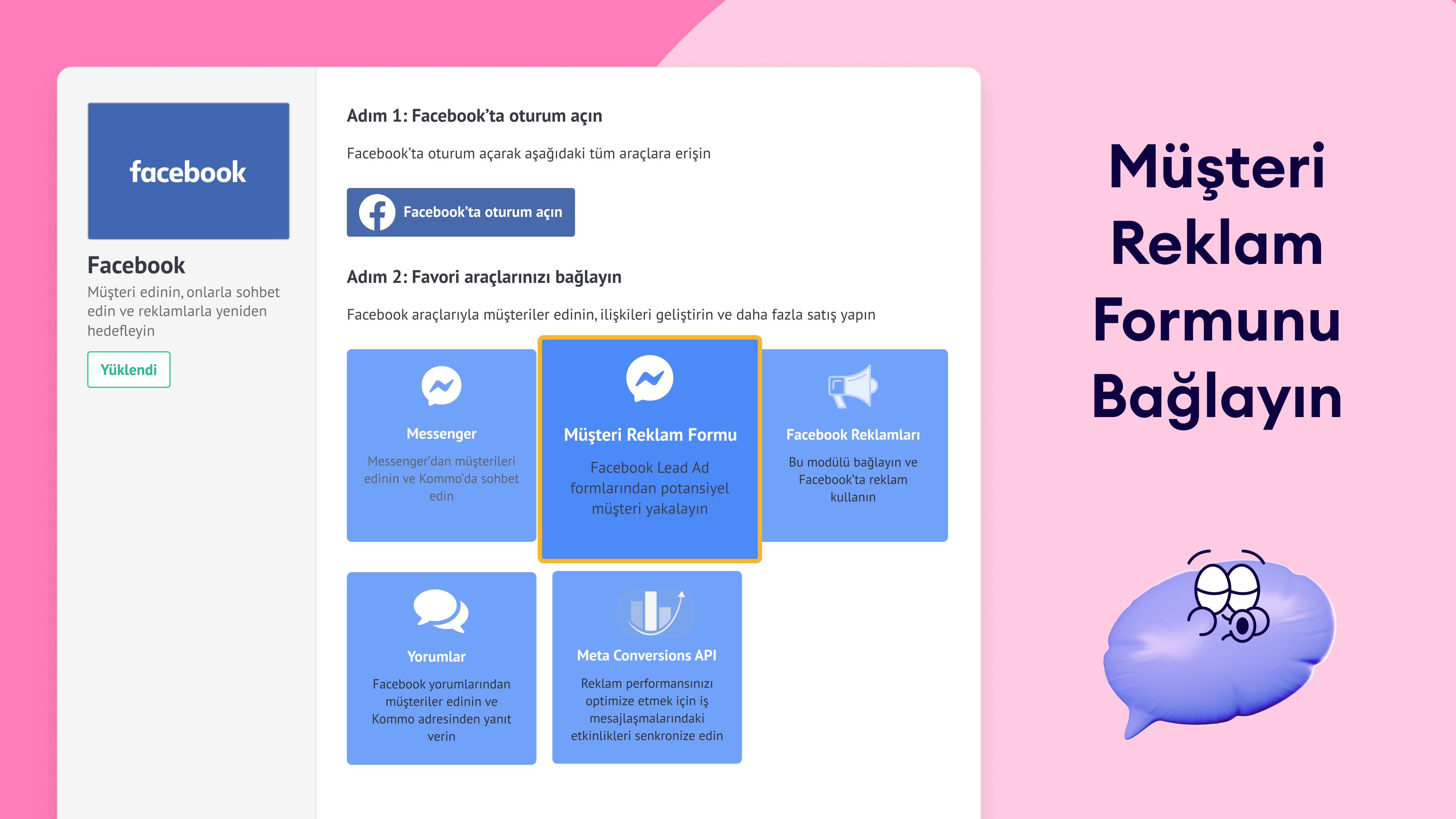 Kommo'da Facebook Potansiyel Müşteri Formu entegrasyonunu kurmak için: