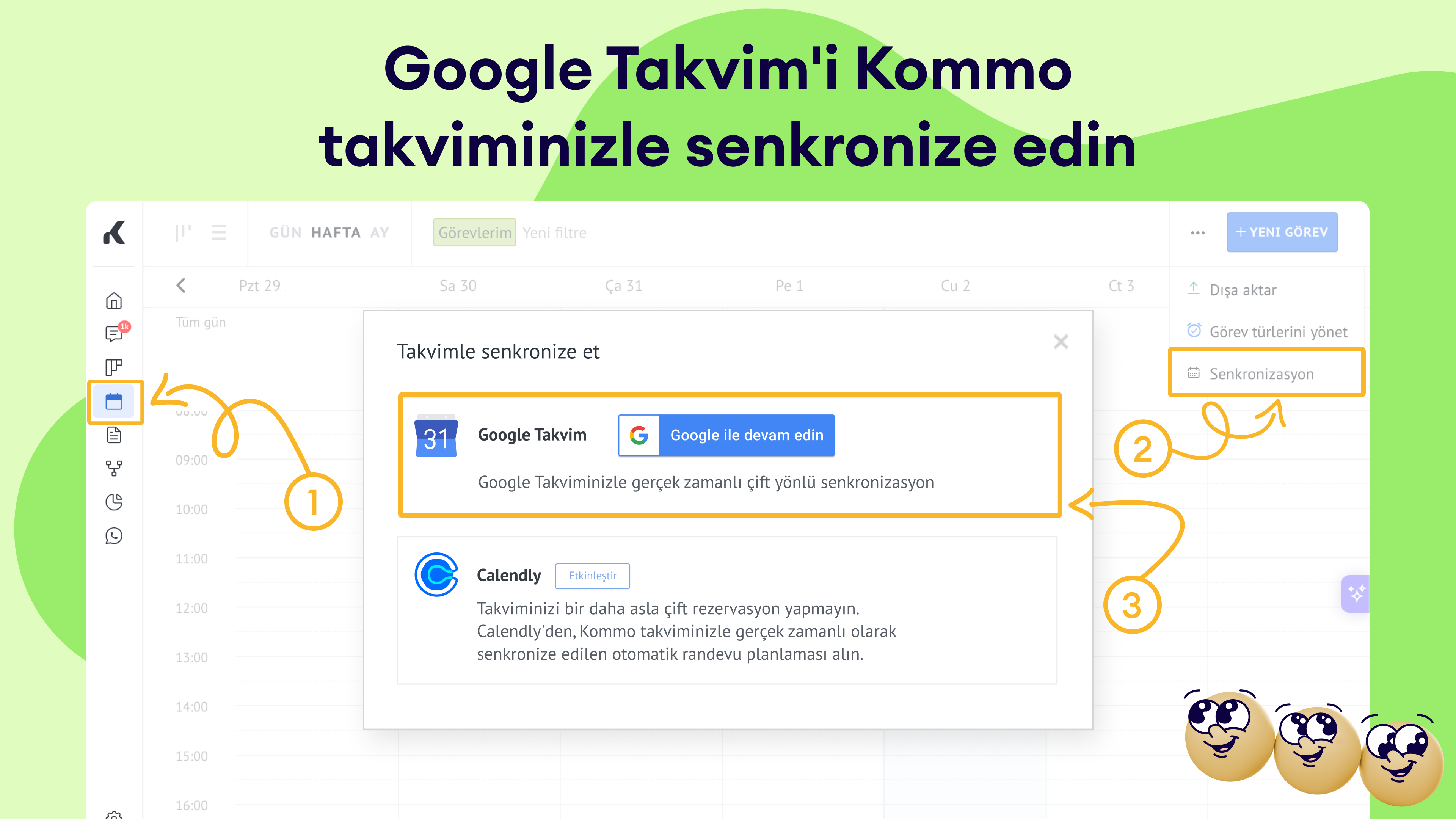 İşte bu kadar! Takviminiz senkronize ve kullanıma hazır 📅. Daha fazla bilgi için kurulum kılavuzumuzu ziyaret edin!