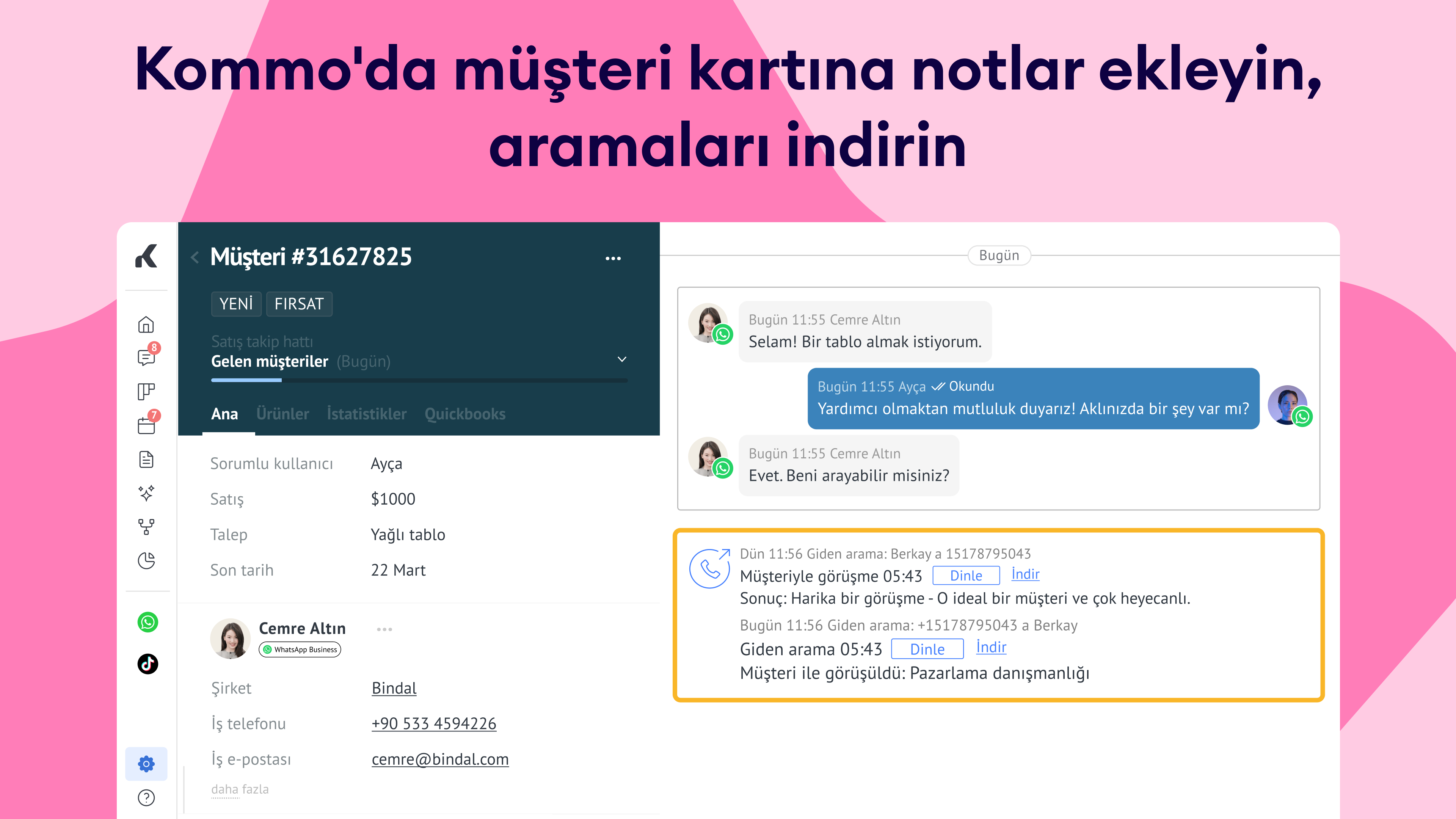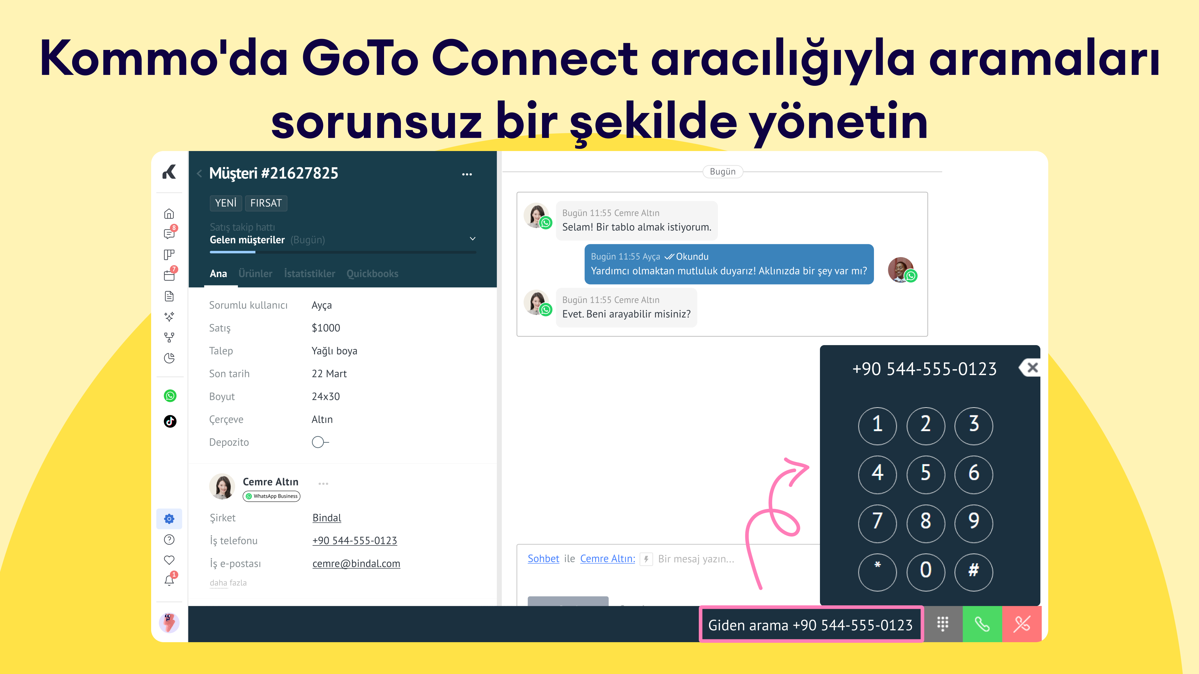 Tıkla ve ara işlevi: Tek bir tıklama ile doğrudan müşteri kartlarından arama başlatın, manuel olarak numarayı çevirme gerekliliğini ortadan kaldırın.