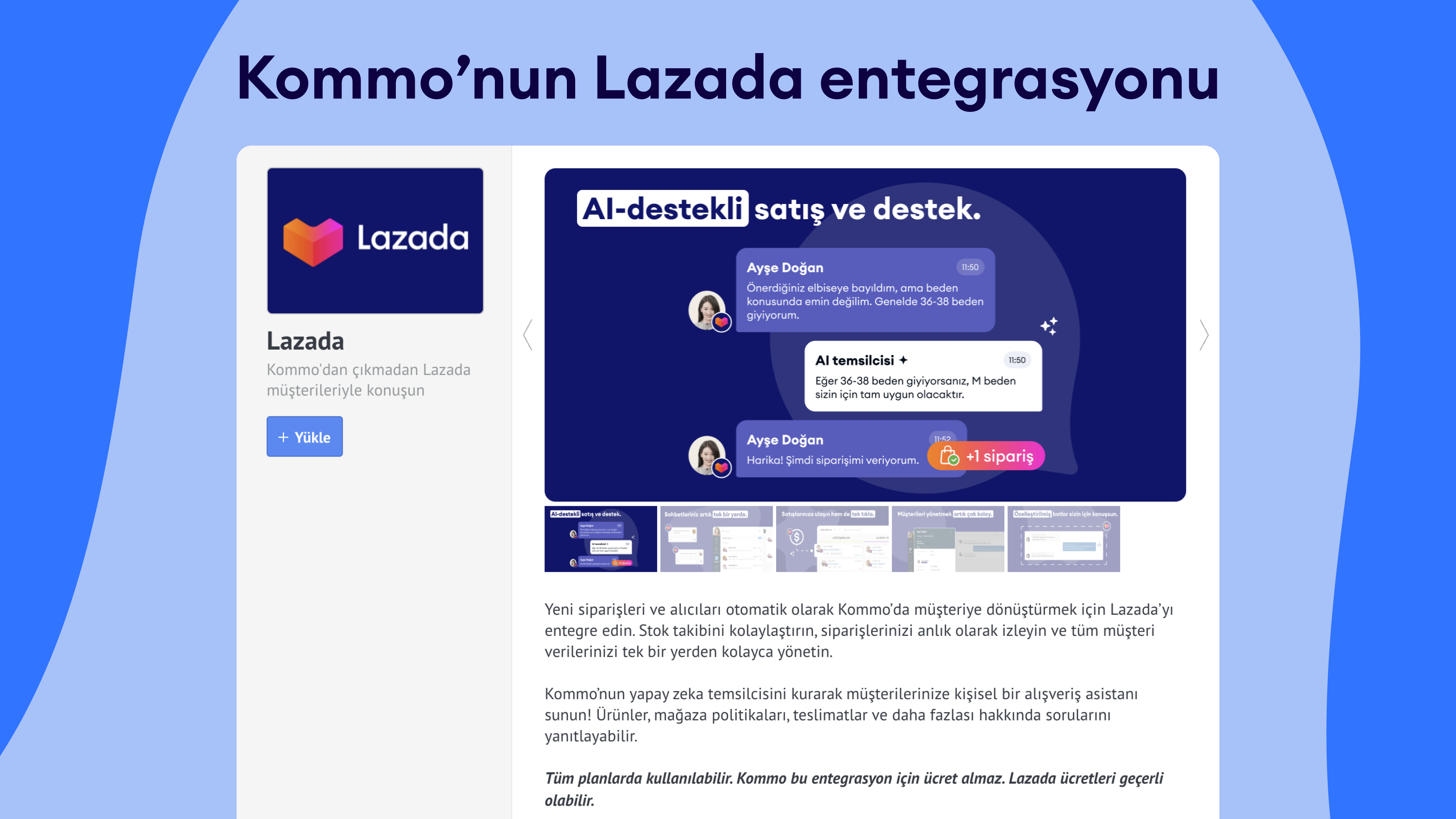 Lazada, Kommo'nun AI öncelikli yaklaşımıyla birleştiğinde çok daha güçlü hale geliyor. AI temsilcisi, SSS'leri ve sipariş güncellemelerini yönetirken, Kommo AI ekibinize daha akıllı yanıtlar ve istatistikler sunuyor. Müşteri iletişimi daha hızlı ve tutarlı hale geliyor. Kommo'nun görsel satış takip hattı, çok kanallı gelen kutusu ve iş akışı otomasyonunu da ekleyin ve her adımda verimliliği artırırken satış ve desteği mükemmel bir şekilde senkronize eden bir sisteme sahip olun.