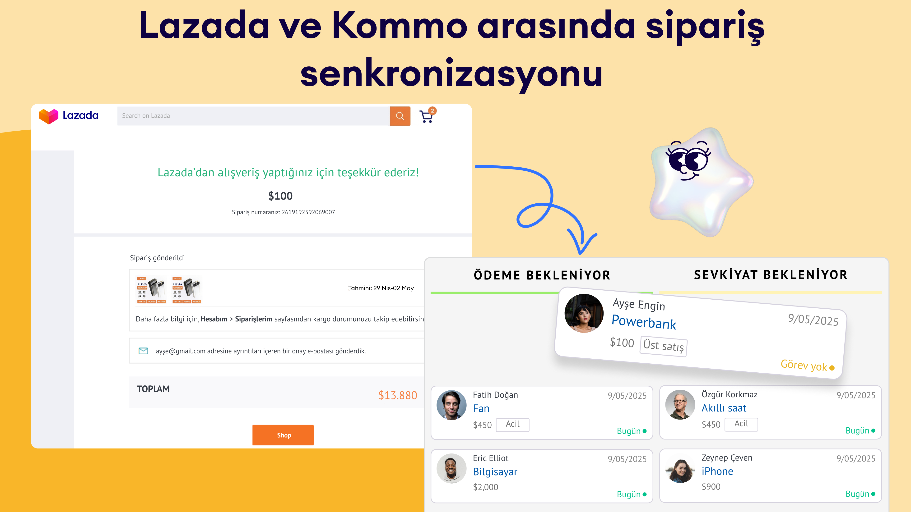 Kommo'daki Lazada entegrasyonu, mağaza işlemlerinizi CRM'inize taşır. Mesajlar potansiyel müşterilere dönüşür, ürün ve sipariş verileri müşteri potansiyel kartlarında düzenli bir şekilde saklanır ve yapay zeka destekli otomasyon mağazanızın sorunsuz çalışmasını sağlar. Soruları yanıtlamaktan siparişleri takip etmeye kadar her şey tek bir çalışma alanında gerçekleşir.