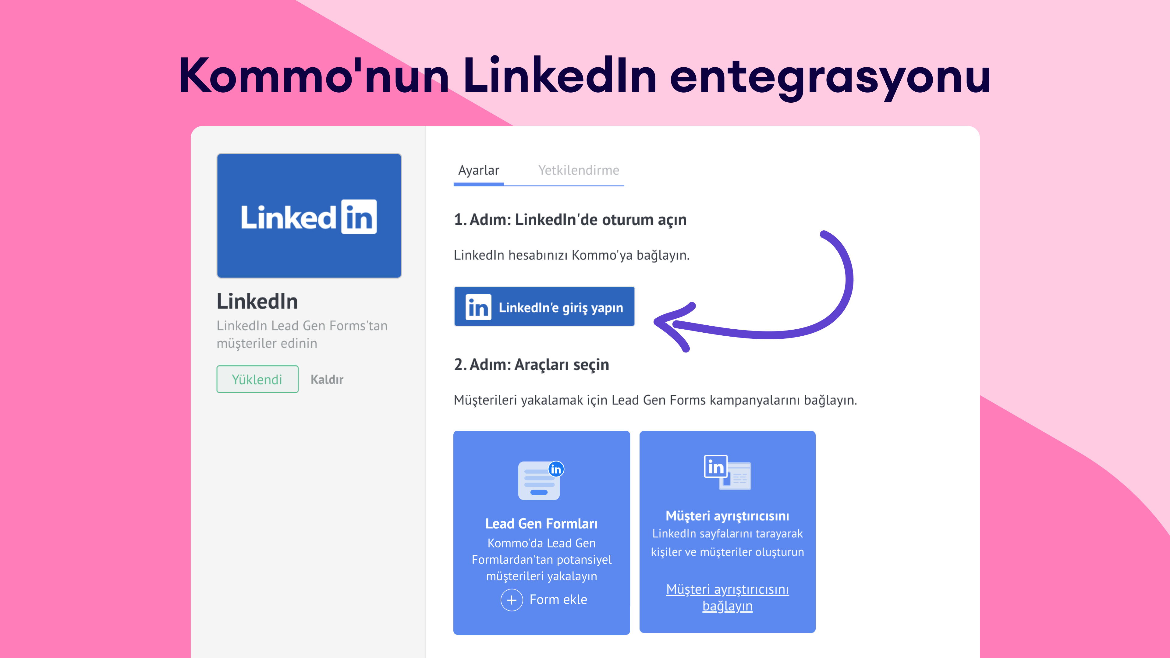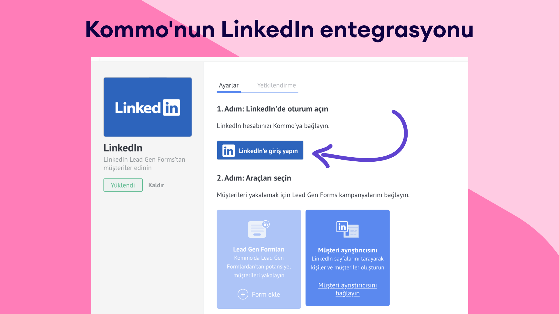 - LinkedIn'e giriş yapın ve Kommo'nun hesabınıza erişmesine izin verin.