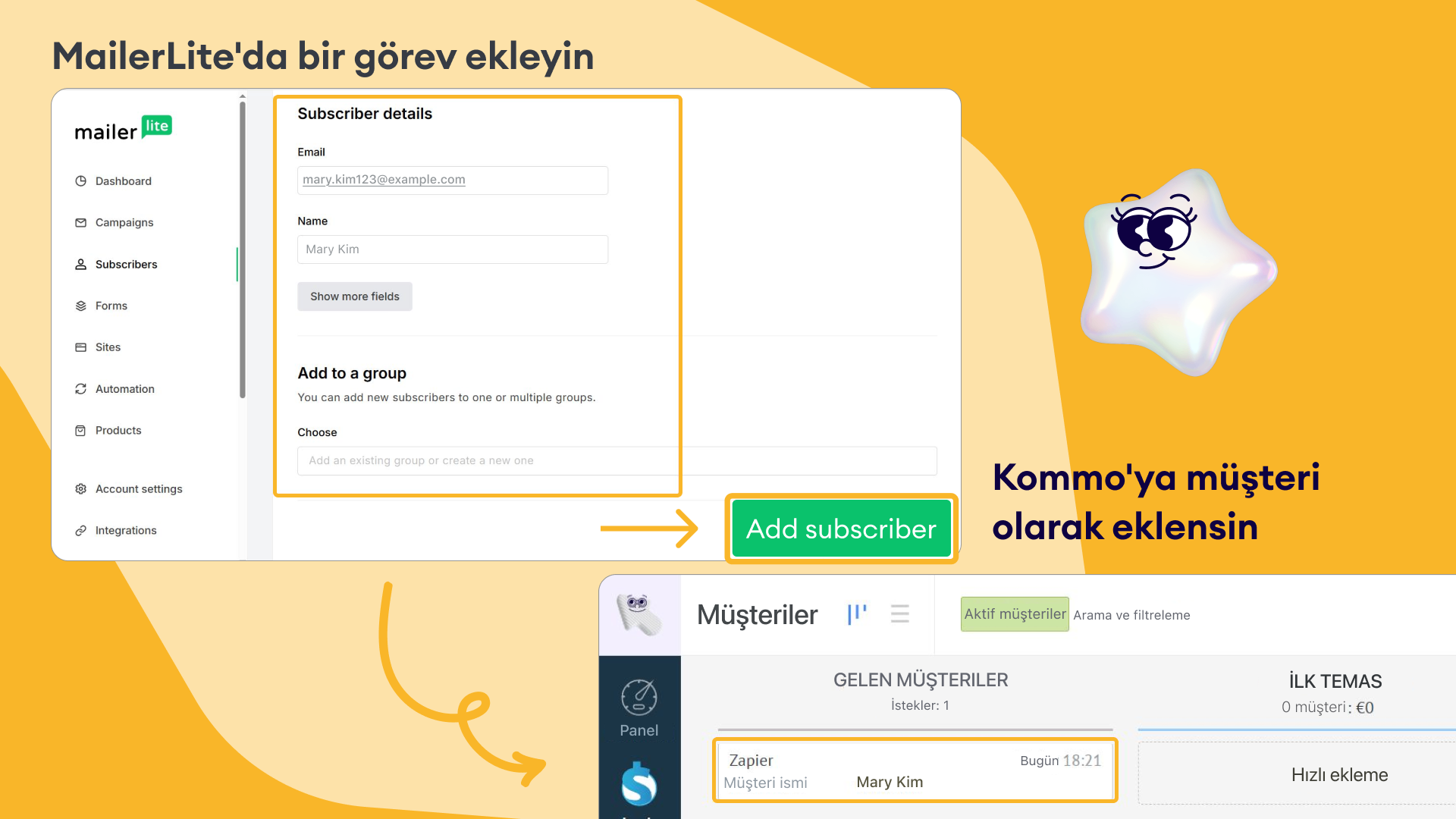 Abone listesi senkronizasyonu: Yeni Kommo müşterilerini belirli MailerLite abone listelerine otomatik olarak ekleyin.